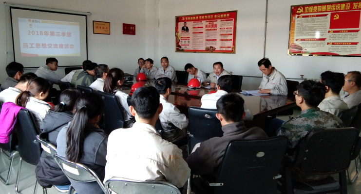 為了充分了解員工的思想動態(tài),征詢廣大職工意見和建議,幫助員工解決工作和生活中的實際困難,加強(qiáng)員工隊伍建設(shè),體現(xiàn)公司以人為本的管理理念,促進(jìn)企業(yè)更加健康、和諧發(fā)展,寧夏興昊永勝鹽業(yè)科技有限公司于10月10日組織召開了2018年第三季度員工思想交流座談會。會議由鹽業(yè)公司總經(jīng)理尚繼榮同志主持,鹽業(yè)公司黨支部副書記王志杰、綜合科科長張偉及職工代表列席參加會議。