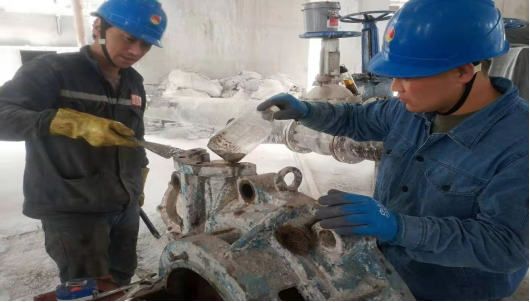 穿過馬路,步入公司核心生產(chǎn)區(qū)域。在生料裝置各個(gè)現(xiàn)場,1#號(hào)濃縮池底安裝渣漿泵,1#-16#刮板機(jī)下料口技改、堆料機(jī)1502皮帶硫化、循環(huán)風(fēng)機(jī)、尾排風(fēng)機(jī)、V選、混料機(jī)、輥壓機(jī)檢修的完成以及1102皮帶托輥檢查及軸承潤滑的進(jìn)行。此時(shí),在酷暑下,一個(gè)個(gè)精神充沛的工友們頂著烈日的酷曬,正聚精會(huì)神的進(jìn)行著檢修作業(yè),他一只手扶著設(shè)備,一只手使勁的搬動(dòng)著板子,那動(dòng)作仿佛撫摸初生嬰兒的笑臉,那種眼神好似在說:孩子,你快成型了,等你成型組裝后,就會(huì)被帶動(dòng)其他設(shè)備和諧運(yùn)轉(zhuǎn)。他們是設(shè)備正常運(yùn)轉(zhuǎn)的一個(gè)個(gè)信使,傳遞著安全生產(chǎn),減輕勞動(dòng)強(qiáng)度,促進(jìn)人們對公司健康發(fā)展的美好祝愿。