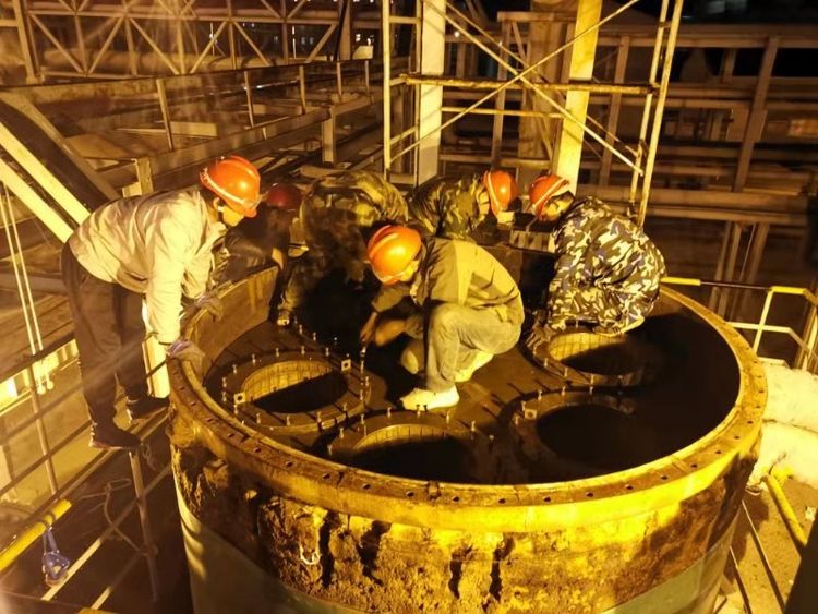 清晨,我看到兢兢業(yè)業(yè)的管理人員和朝氣蓬勃的年輕同事,他們“武裝上陣”頭戴安全帽,手帶防護(hù)手套。拿著各類(lèi)方案和各類(lèi)工具,快速地奔向各個(gè)檢修點(diǎn)。我看到他們忙碌的身影和為了完成檢修任務(wù)而焦灼的神情,大大小小的設(shè)備里三人一伙,兩人一組,有更換閥門(mén)的,有更換閥欄的,每個(gè)人手上、身上都沾滿(mǎn)了油污,他們沒(méi)有抱怨,只是默默地付出著。