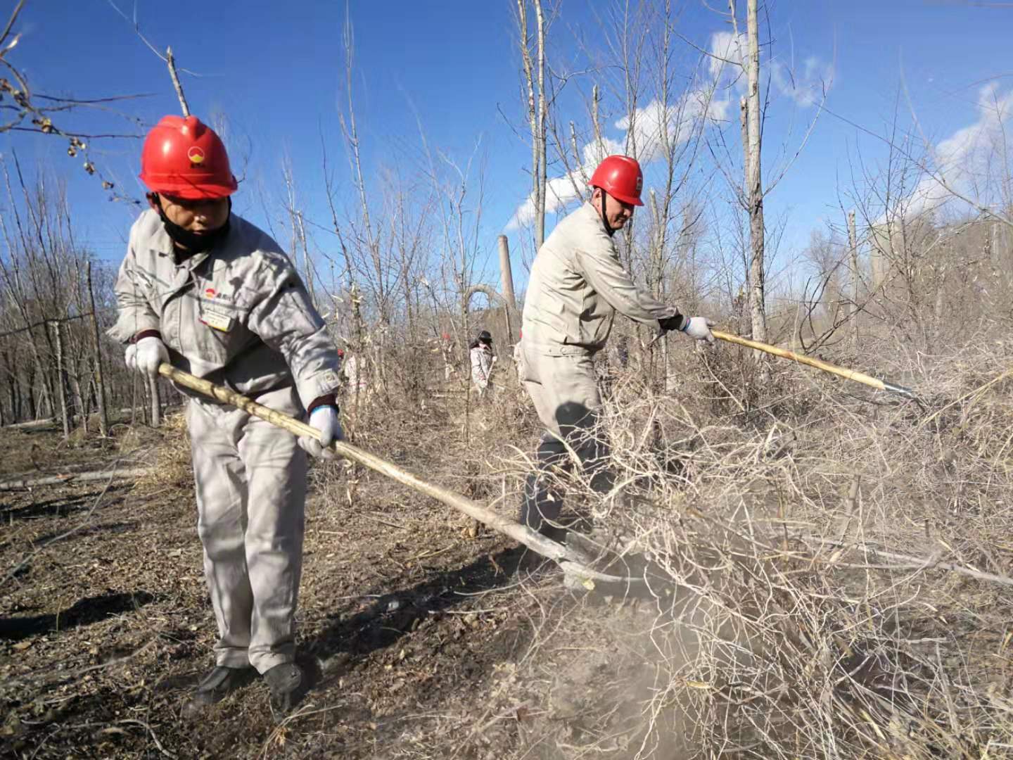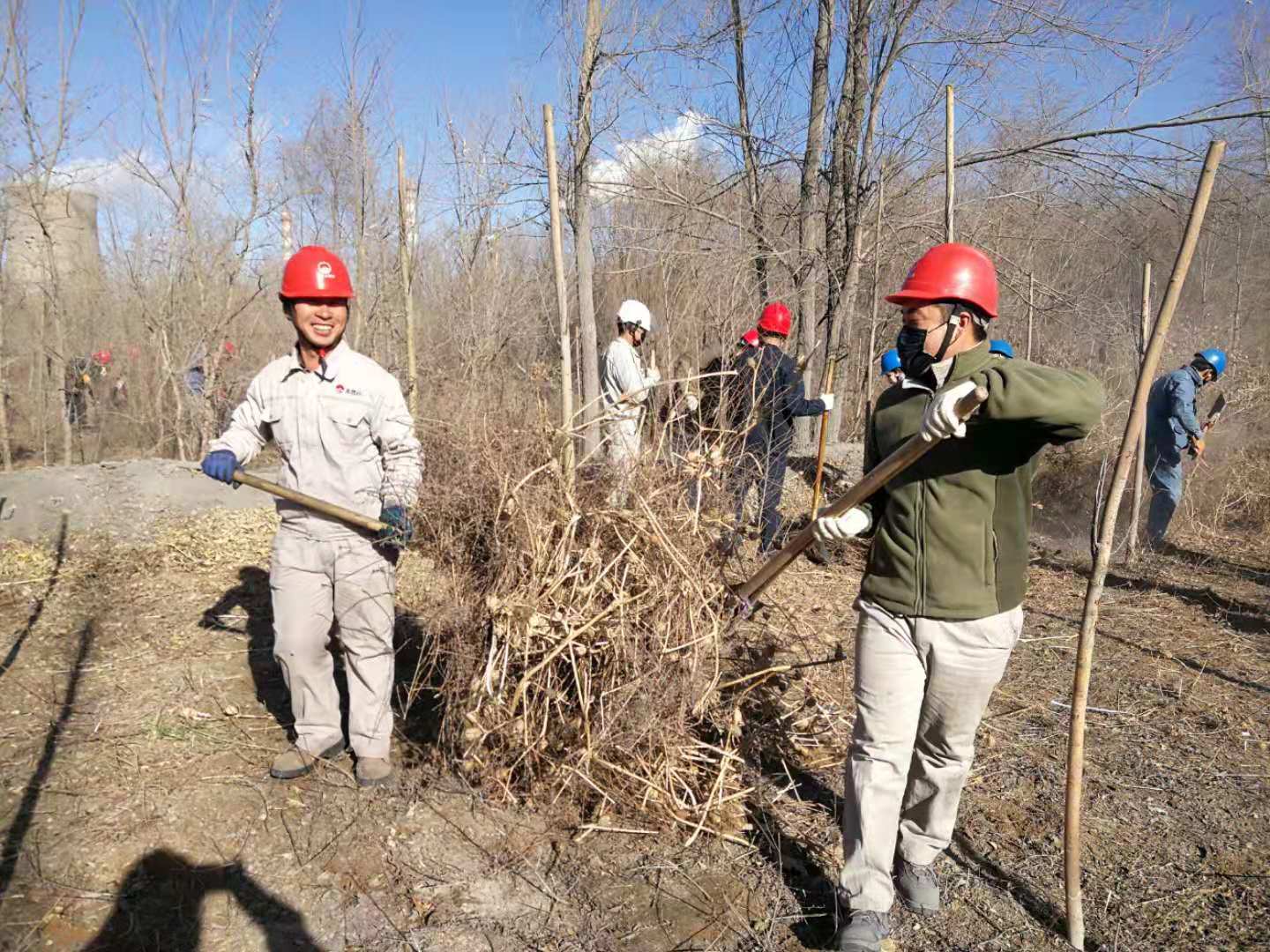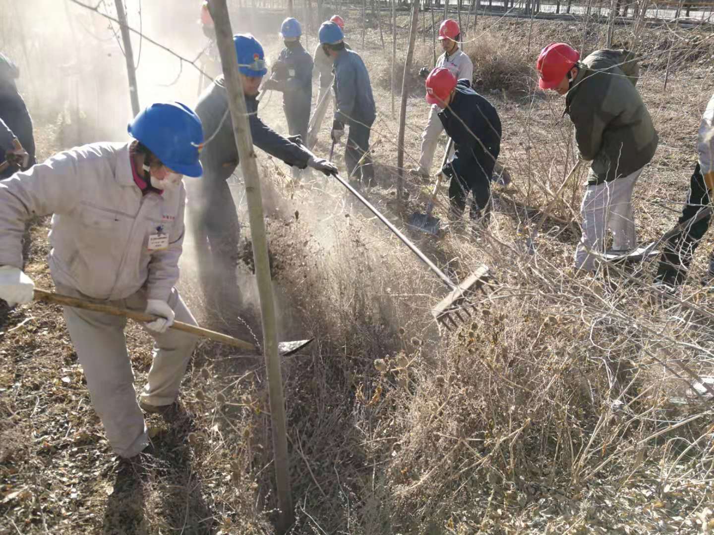 嚴寒的冬天已經(jīng)來臨,后山樹林落葉堆積較厚,干燥的枯草在風中搖曳,存在較大火災風險隱患。結(jié)合集團公司正在開展的第二批“不忘初心、牢記使命”主題教育實踐活動,青銅峽片區(qū)集中組織全體黨員干部和日勤職工開展后山樹林落葉、枯草清理工作。