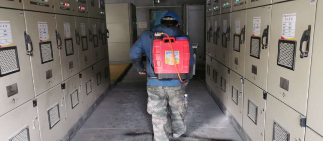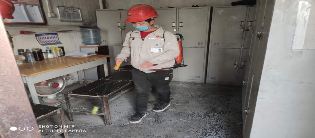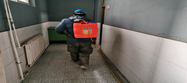 對廠區(qū)衛(wèi)生間消毒。