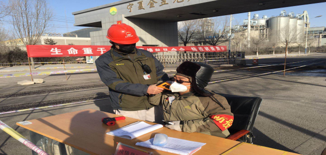 在園區(qū)南門,今日截止下午17時(shí)整,他們檢測(cè)、消毒、登記車輛78輛,人員100人,車輛正常,人員體溫均在正常范圍。