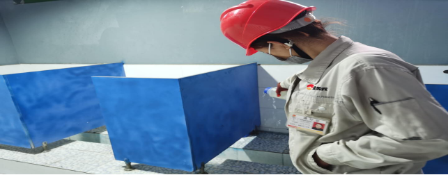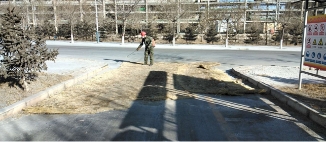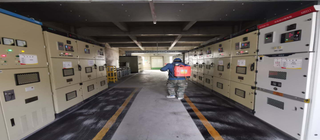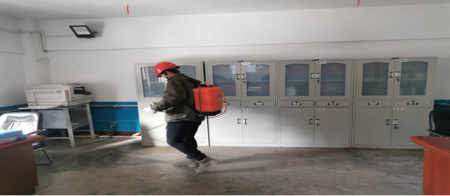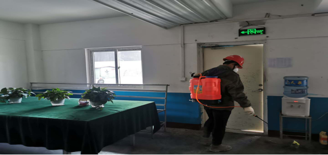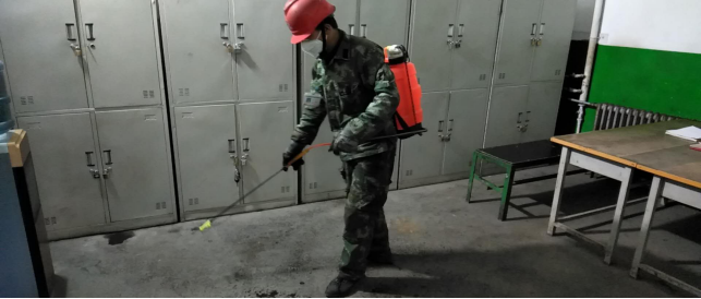 對(duì)廠區(qū)衛(wèi)生間消毒。