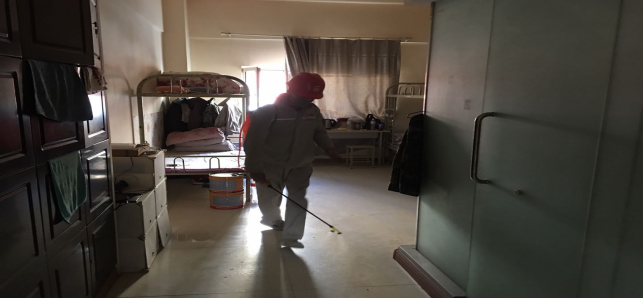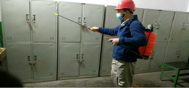 在崗位辦公室消毒。