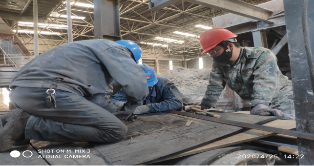 (9)電石渣干粉庫頂4臺風(fēng)格輪電機(jī)檢修(完成)。