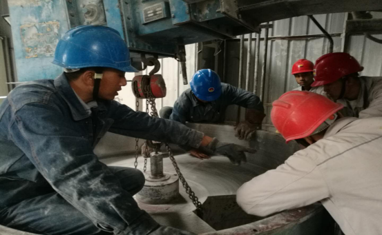 根據(jù)檢修計劃安排,此次檢修從9月9日開始,9月23日結(jié)束,計劃工期15天。計劃完成檢修標(biāo)準(zhǔn)項目81項,新增18項。參與本次檢修的外協(xié)單位共3家,主要有更換窯磚、窯頭密封改造、輥壓機柱釘輥更換、更換預(yù)熱器掛片、烘干破管道更換及防腐處理、鎖風(fēng)下料器更換等檢修內(nèi)容。