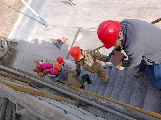 4月11日晚間22時(shí)50分許,回轉(zhuǎn)窯筒體24.5米處出現(xiàn)紅窯現(xiàn)象,根據(jù)經(jīng)驗(yàn),初步判斷是窯磚脫落;剞D(zhuǎn)窯系統(tǒng)止料,計(jì)劃挖補(bǔ)。安環(huán)生產(chǎn)科科長(zhǎng)張振忠得知消息后,立即向各級(jí)領(lǐng)導(dǎo)進(jìn)行了逐級(jí)匯報(bào),他們不約而同的在第一時(shí)間趕回廠里,立即采取相應(yīng)措施,迅速組織搶修。12日凌晨1:40分許,全體管理人員及崗位巡檢人員頂著寒風(fēng),組織實(shí)施第一步搶搶修工作——打開窯門,進(jìn)行降溫。上午8:00分,公司領(lǐng)導(dǎo)緊急召開搶修前技術(shù)和安全交底,調(diào)集人員,冒著窯內(nèi)高溫,進(jìn)行邊卸料邊轉(zhuǎn)運(yùn)邊挖補(bǔ)工作。按照分工,全體參戰(zhàn)人員都在緊張有序的忙碌著。
