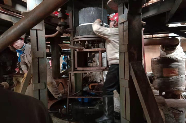 燈頭是蒸汽爐最核心的部件,它就如同蒸汽爐的“心臟”,保證著蒸汽爐的安全平穩(wěn)運(yùn)行。由于燈頭是石英材質(zhì),不能有任何碰撞。有著二十年檢修工作經(jīng)驗(yàn)沈培銀老師傅,像一名“將軍”一樣,指揮著大家拆燈頭,滿(mǎn)身的油污,像軍功章一樣掛在他的胸前。只見(jiàn)他拿來(lái)三根全絲螺桿,均勻地固定在燈頭支座上,隨著三只螺母的松動(dòng),燈頭就開(kāi)始慢慢地向下移動(dòng),為了保證燈頭的平穩(wěn)下落,三個(gè)人必須同時(shí)松動(dòng)螺母,這需要高度默契地配合。 沈培銀老師傅不緊不慢地松動(dòng)著螺母,并時(shí)刻提醒著其他兩個(gè)人的進(jìn)度。汗水早已濕透了三人的衣服,裹挾著污漬的汗水不停地順著他們的臉頰滴落。愛(ài)開(kāi)玩笑的同事,不失時(shí)機(jī)地說(shuō)個(gè)笑話(huà),逗得大家哈哈大笑,身上的疲憊感頓時(shí)消減幾分。