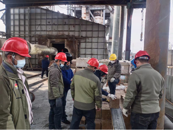 2月12日8:30—2月13日11:30分,在一片緊張有序的指揮中,展開了爭分奪秒的窯磚挖補工作。這里有公司領導、職能科室、質檢科及生產(chǎn)裝置全體員工,他們組成兩撥人員,實行24小時工作制。在現(xiàn)場,他們齊心協(xié)力、同舟共濟、相互打壓加氣,每一塊磚凝結著每一位員工心血。正當深夜,每個人堅持工作的最后一刻,從他們的表情中,可以看出,那種屏住呼吸、動作標準、目光堅定,無不詮釋著對工作的履職盡責。