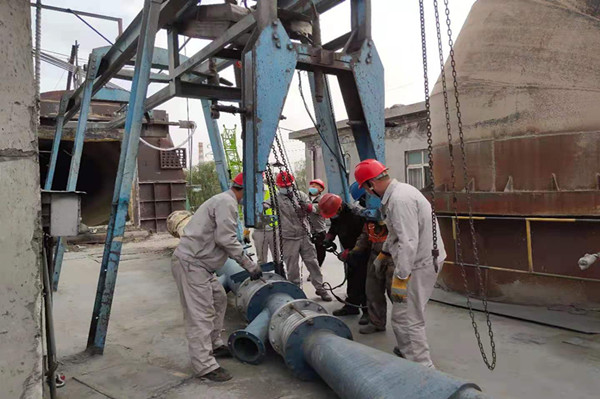 團(tuán)隊是什么,是為了實現(xiàn)一個共同的目標(biāo)而集合起來的人。 任何一個人的力量都是渺小的,只有融入團(tuán)隊,只有與團(tuán)隊一起奮斗,勁往一處使,你才能實現(xiàn)個人價值的最大化,你才能成就自己的卓越!伴隨副總經(jīng)理一聲令下,所有人員喊著豪邁的口號,配合吊機(jī)的力臂推動著奇重?zé)o比的噴煤管一點一點的前行。又一會功夫?qū)⒒剞D(zhuǎn)窯門緩緩調(diào)至檢修現(xiàn)場安全的位置。