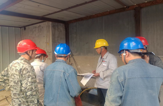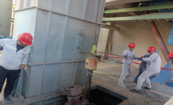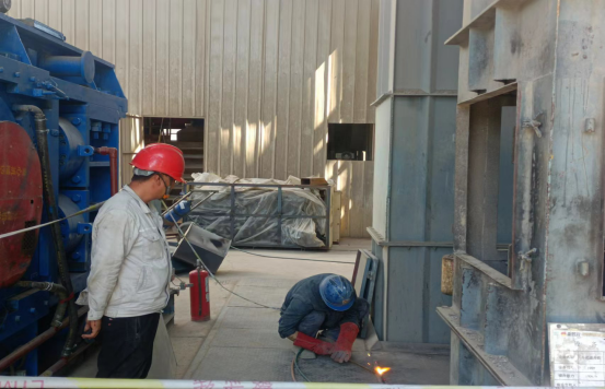 更換生料1909提升機鏈條和料斗現(xiàn)場:他們無懼“烤”驗 ,“汗”衛(wèi)設(shè)備有效運行。檢修中,他們手持焊槍,用一片赤忱,“汗”衛(wèi)設(shè)備長周期穩(wěn)定運行,在太陽曝曬下,設(shè)備溫度已達(dá)40℃左右,有限高溫作業(yè),一會兒焊接,一會兒切割,一會兒又是安裝……他們堅守一道道安全之門,即使皮膚曬得黝黑,汗水濕透衣衫,依然為的是安全生產(chǎn)穩(wěn)定保駕護航!