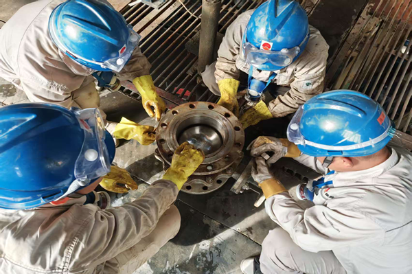 大型球閥的檢修是一項(xiàng)對(duì)精度要求極高的工作。從拆解閥體、檢查閥芯,到更換密封件、研磨密封面,每一個(gè)步驟都容不得半點(diǎn)馬虎。在高溫、高噪的現(xiàn)場(chǎng)環(huán)境中,檢修人員不僅要對(duì)抗體力消耗,更要保持高度的專業(yè)嚴(yán)謹(jǐn)。為了確保密封性能達(dá)標(biāo),他們反復(fù)測(cè)量密封面的平面度,用細(xì)砂紙手工研磨,直到達(dá)到工藝標(biāo)準(zhǔn);在回裝螺栓時(shí),嚴(yán)格按照對(duì)角順序和規(guī)定力矩緊固,避免因受力不均導(dǎo)致泄漏。作業(yè)中,有人佩戴著防護(hù)眼鏡與防毒面具,這既是對(duì)操作規(guī)程的遵守,更是對(duì)自身安全與生產(chǎn)責(zé)任的雙重?fù)?dān)當(dāng)。