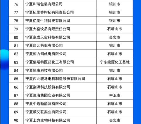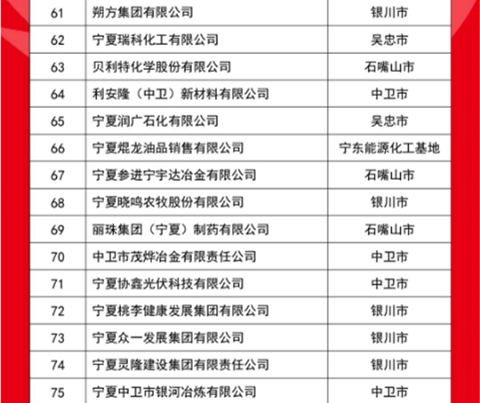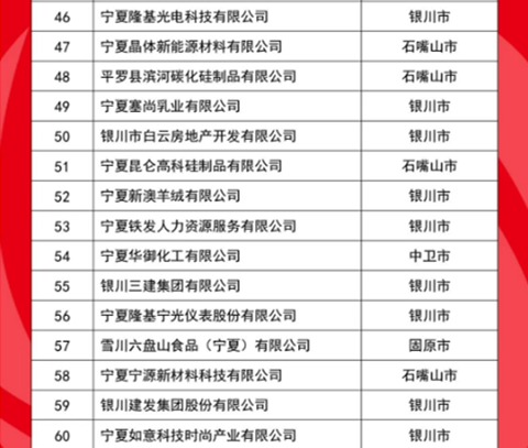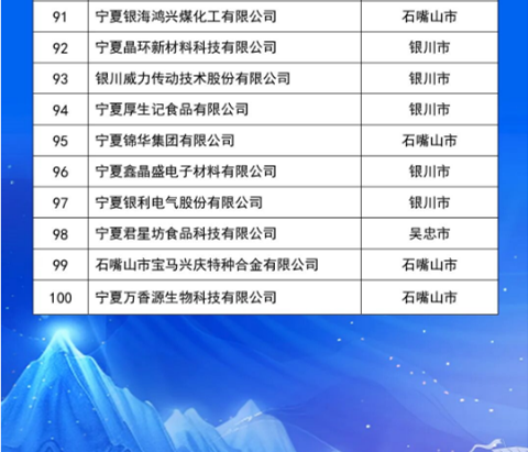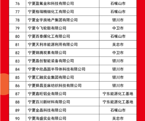 10月21日,2025寧夏民營企業(yè)100強發(fā)布會在吳忠市舉行,發(fā)布了“2025寧夏民營企業(yè)100強榜單”,入圍門檻5.84億元,入圍企業(yè)營收總額為3513.79億元,資產總額5755.01億元,利潤總額506.80億元。其中,制造業(yè)有73家,房地產業(yè)有11家,建筑業(yè)、批發(fā)和零售業(yè)、電力熱力燃氣及水生產供應業(yè)各有4家,交通運輸、倉儲和郵政業(yè)有2家,商務服務業(yè)有1家,農、林、牧、漁業(yè)有1家。有28家企業(yè)涉及新型材料產業(yè),有18家企業(yè)涉及風電、光伏、氫能等清潔能源產業(yè)。會上,還發(fā)布了“2025寧夏制造業(yè)民營企業(yè)100強榜單”和《2025寧夏民營企業(yè)100強調研分析報告》。