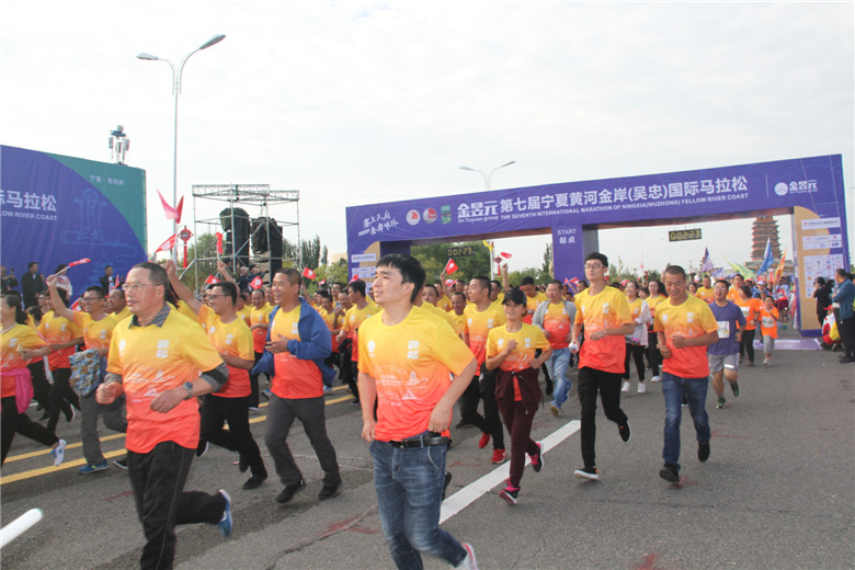 2018金昱元第七屆寧夏黃河金岸(吳忠)國際馬拉松在黃河奧林匹克公園開跑。金昱元與寧馬在2017年首次進行馬拉松賽事合作就建立了良好的合作基礎與友誼。2018年,金昱元再次攜手寧馬,成為本屆寧馬賽事的總冠名贊助商。