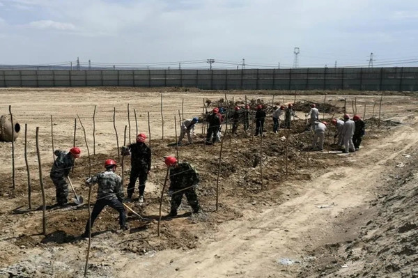 參加植樹的職工一到植樹現(xiàn)場,便投入到忙碌的工作當(dāng)中,大家爭先恐后揮鍬挖土、放苗回填,現(xiàn)場一片繁忙景象。