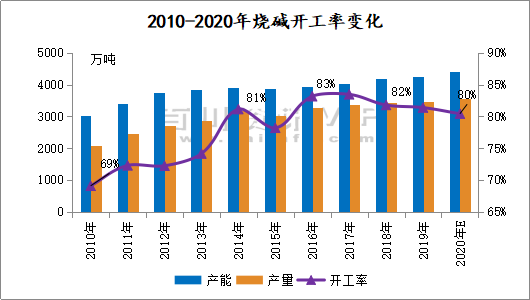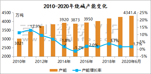 由此可見,2020年全國總產(chǎn)能實現(xiàn)穩(wěn)步增長,但整體增速相比同期有所下降,受全球公共衛(wèi)生事件沖擊,燒堿下游需求表現(xiàn)不佳,整體行情不甚樂觀。出于整體需求和供需平衡考量,預計未來產(chǎn)能增速將有放緩表現(xiàn),具體發(fā)展變化還需關注后續(xù)全球公共衛(wèi)生事件處置情況及市場行情實時變化。