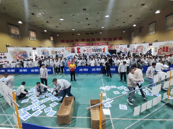 隨著裁判一聲令下,企業(yè)理念拼字比賽迎來(lái)激動(dòng)人心的時(shí)刻。各參賽隊(duì)員不急不躁、有條不紊,大家集思廣益、默契配合,在最短時(shí)間內(nèi)準(zhǔn)確拼出“踐行綠色發(fā)展 留駐青山綠水”“山水昱心 共創(chuàng)好未來(lái)”“安全就是幸福 安全就是效益”等橫幅。